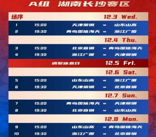 长沙赛区A组:北京、山东、青岛、广厦、天津。