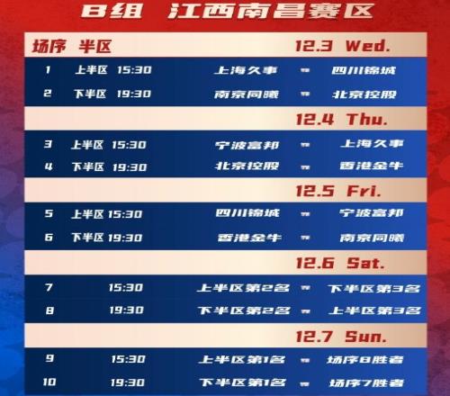 南昌赛区B组:上海、同曦、宁波、北控、四川、香港金牛。