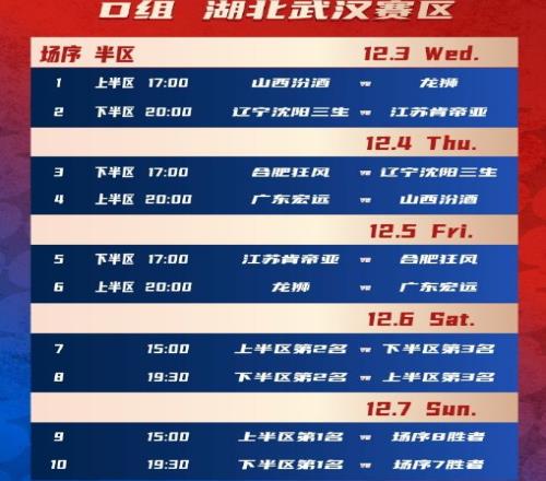 武汉赛区D组:山西、江苏、广东、辽宁、广州、合肥狂风。
