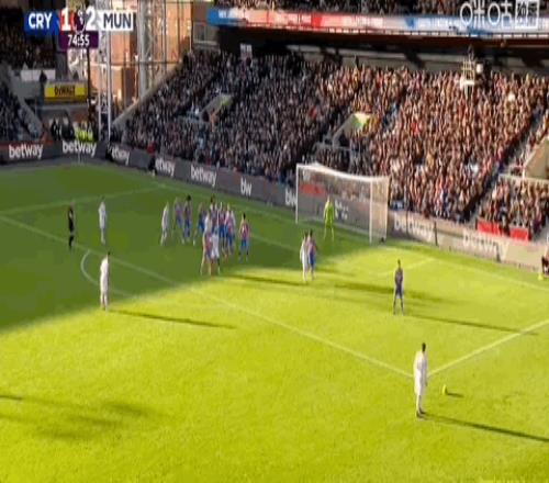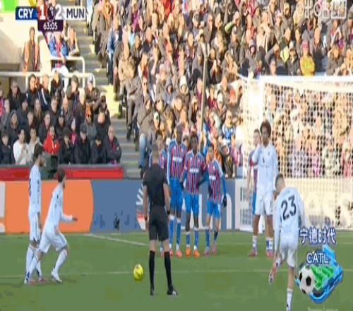 第63分钟,B费战术任意球助攻芒特破门,曼联2-1反超水晶宫!