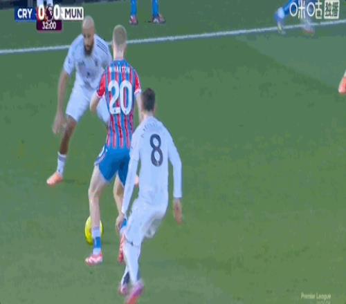 第54分钟,齐尔克泽小角度抽射打进个人赛季首球,曼联1-1水晶宫!
