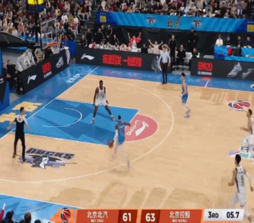 第三节,曾凡博开启了接管更多的球权,登场4分钟多时间,3中3,罚球4中3,单节得到10分1助攻,既有反击三分,也有抢断后顺下一条龙2分打中,曾凡博三节得到18分,帮助北京战至63-63。